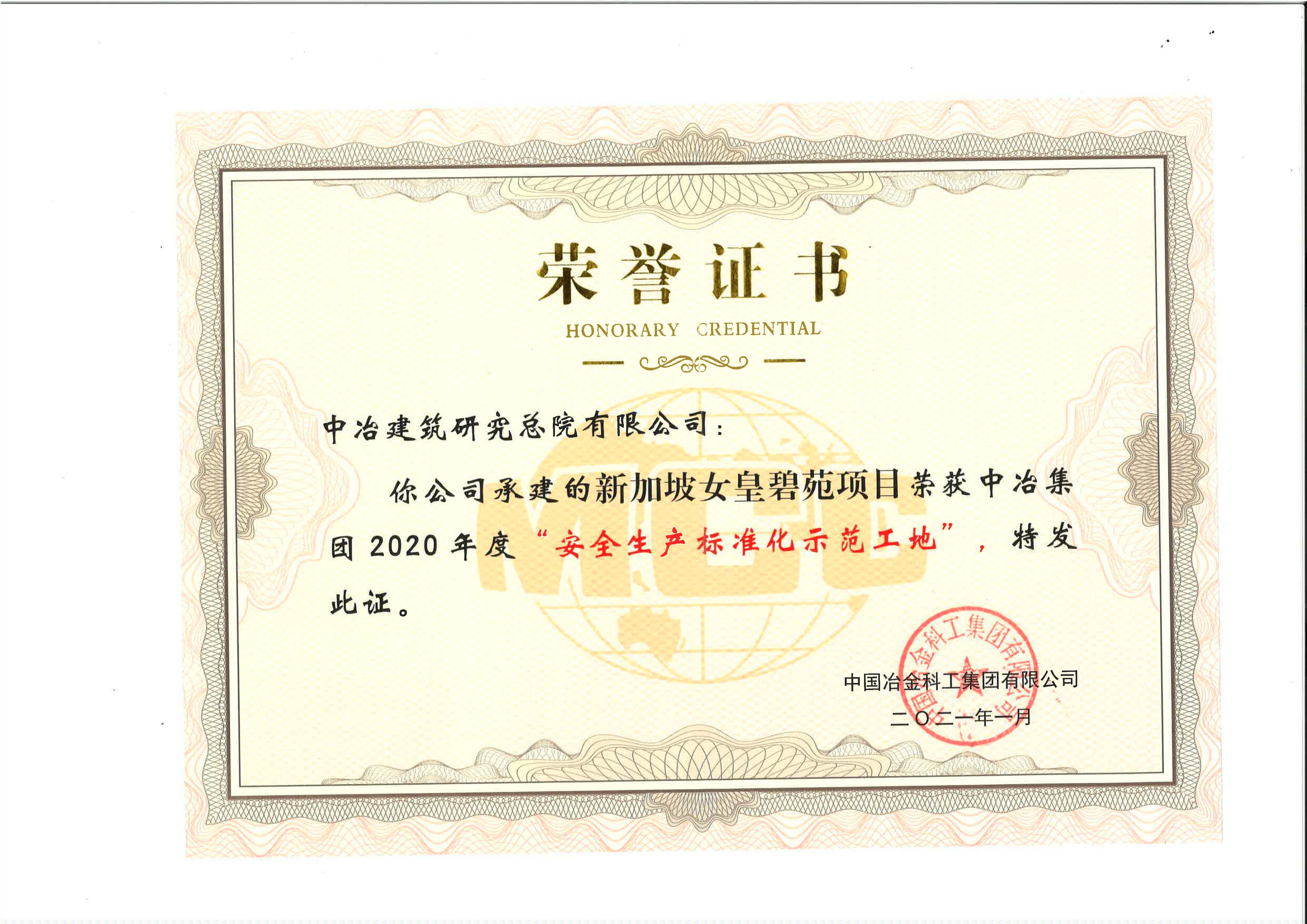 中冶集团2020年度标准化工地-新加坡女皇碧苑项目