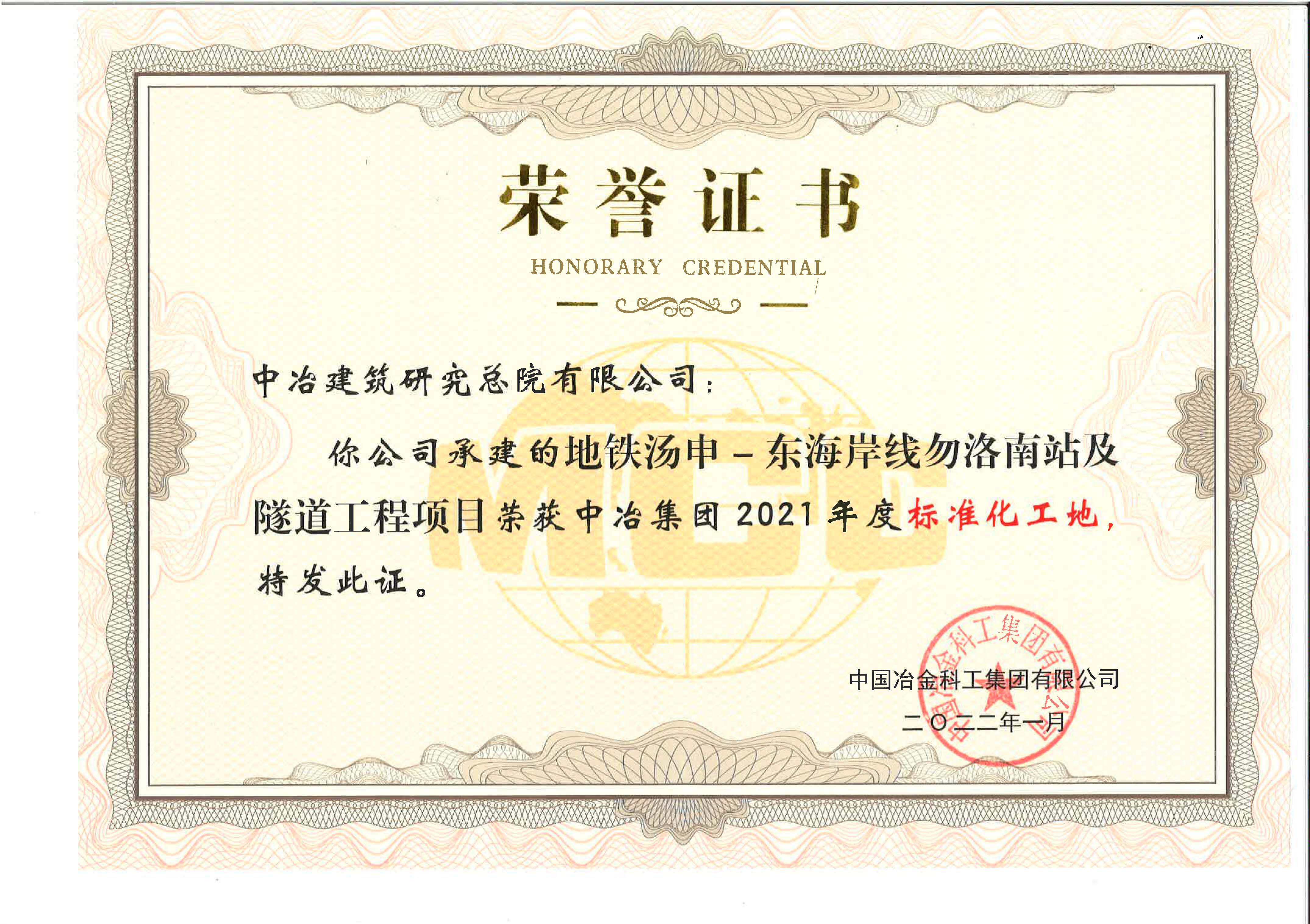 中冶集团2021年标准化工地—地铁汤申-东海岸线勿洛南站及隧道工程项目